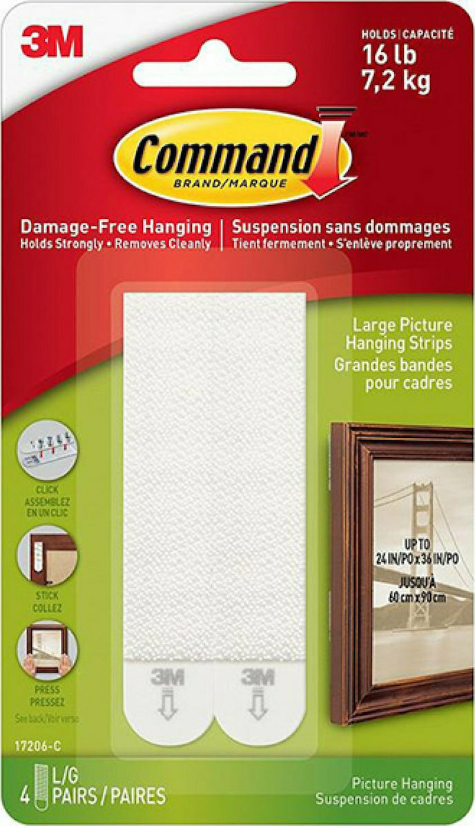 3M Command 17206 Αυτοκόλλητη Επανατοποθετούμενη Ταινία Λευκή 8τμχ Εώς 7.2kg