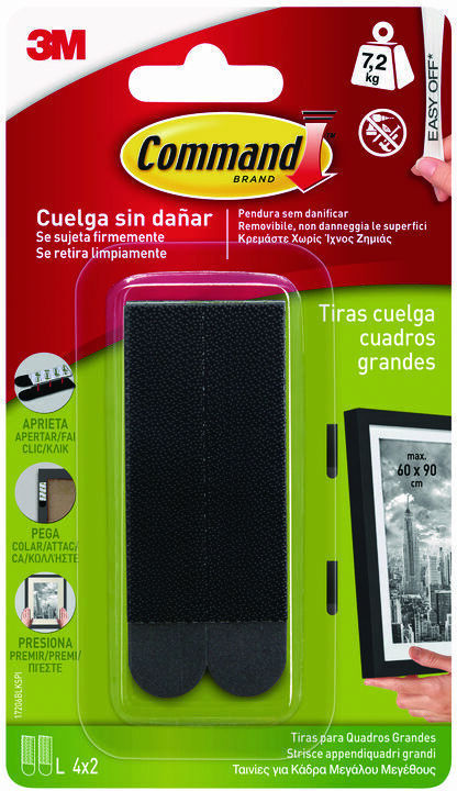 3M Command 17206BLK Αυτοκόλλητη Επανατοποθετούμενη Ταινία Μαύρη 8τμχ