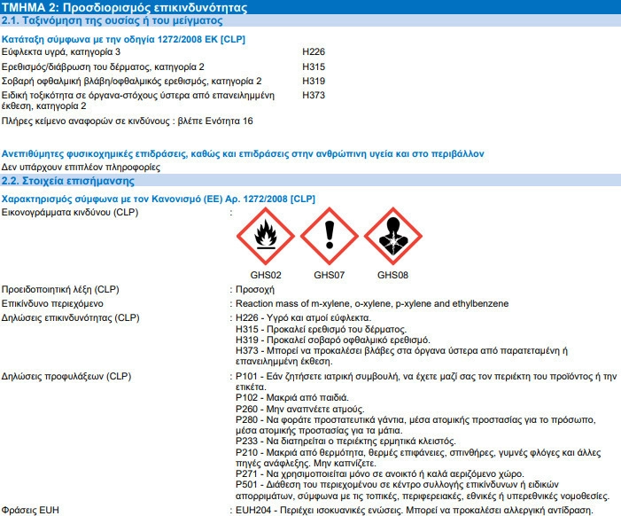 Περιέχει μικρή ποσότητα διαλύτη (xylol) οπότε δεν απαιτείται επιπλέον αραίωση.