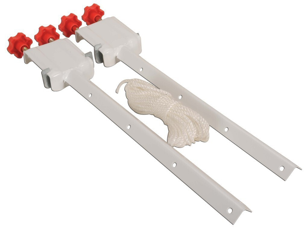 Αποτελούμενη από δύο βραχίονες που διαθέτουν τέσσερις θέσεις για ισάριθμες σειρές απλώματος, μπορεί να εφαρμόσει στις περισσότερες τετράγωνες κουπαστές (έως 10 εκατοστά) χάρη στις ρυθμιζόμενες βίδες στήριξης.