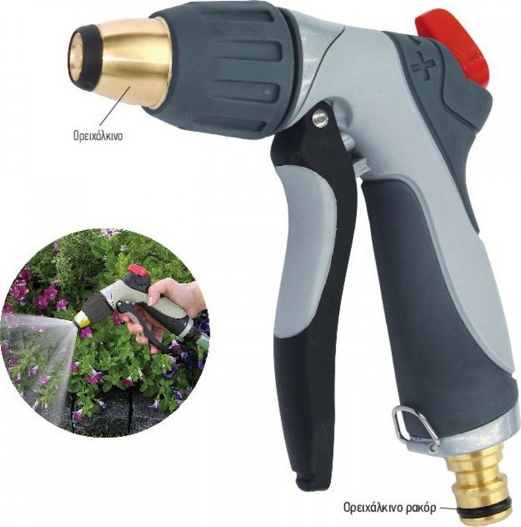 Πιστόλι ποτίσματος εκτόξευσης νερού μεταλλικό ορειχάλκινο ρυθμιζόμενης ροής με μπροστινή σκανδάλη