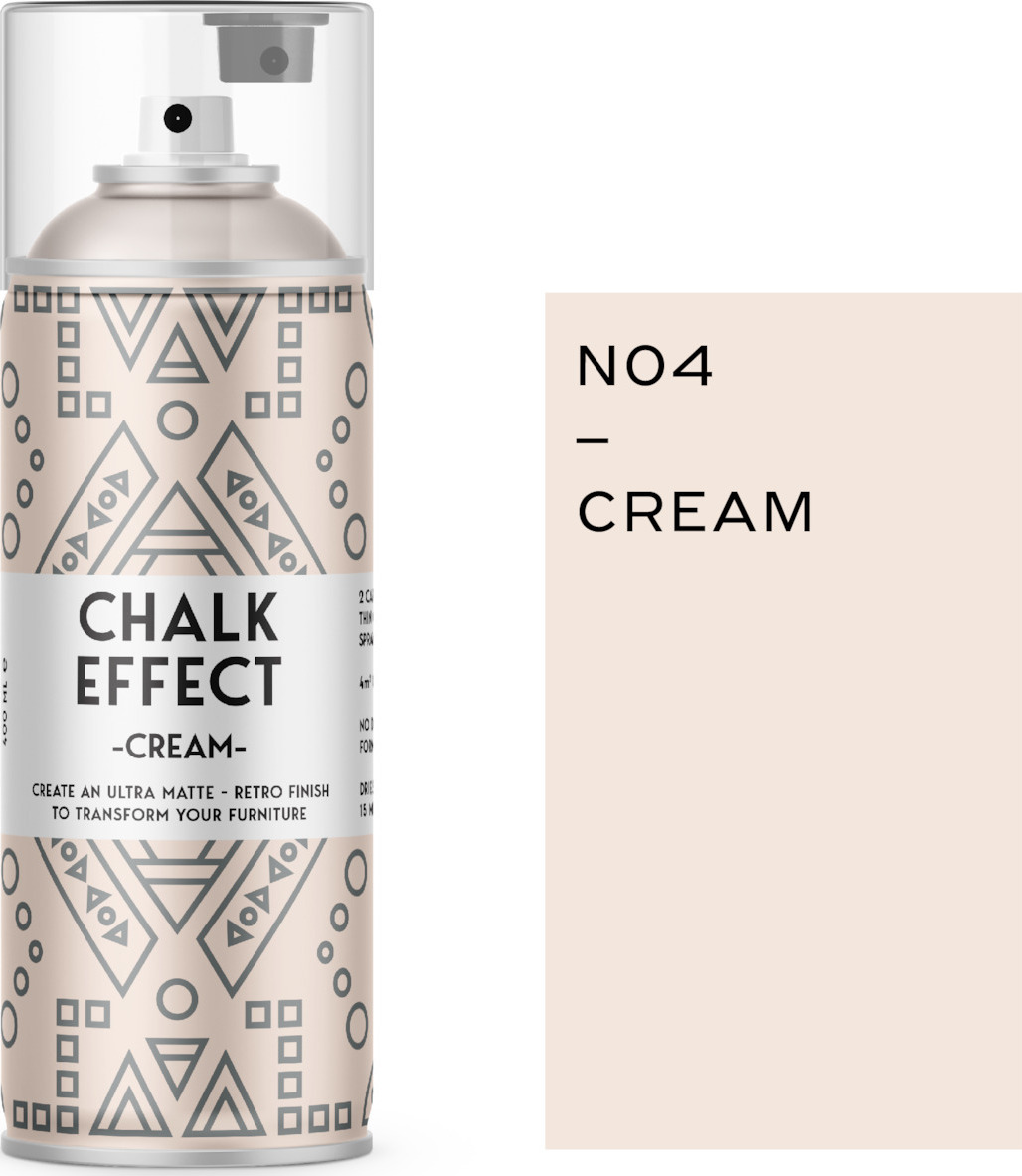 Χρώματα Σπρέι Εφέ Κιμωλίας Spray COSMOS LAC CHALK EFFECT CREAM ΣΠΡΕΙ ΕΦΕ ΚΙΜΩΛΙΑΣ N04 400ml με ματ φινίρισμα για έπιπλα και διακοσμητικά αντικείμενα. Αναζωογονήστε τα έπιπλα και τη διακόσµηση του σπιτιού σας µε απαράµιλλη κοµψότητα. Αποκαταστήστε τα παλιά σας έπιπλα και διακοσμητικά αντικείμενα δίνοντας τους ένα εντυπωσιακό ματ φινίρισμα με τον πιο εύκολο και δημιουργικό τρόπο. Ιδανικό για DIY και επαγγελματική χρήση στις περισσότερες επιφάνειες: ξύλο, μέταλλο, ανοξείδωτο ατσάλι, γυαλί, κεραμικά, πέτρα, ύφασμα, χαρτί και άλλα. Δεν στάζει, δεν χρειάζεται αστάρι, καλύπτει μέχρι και 4m², ενώ ο ειδικός ψεκασμός του Cosmos Chalk Effect ελαχιστοποιεί το χρόνο βαφής. Δώστε νέα ζωή στα παλιά σας έπιπλα, σε 15 λεπτά.