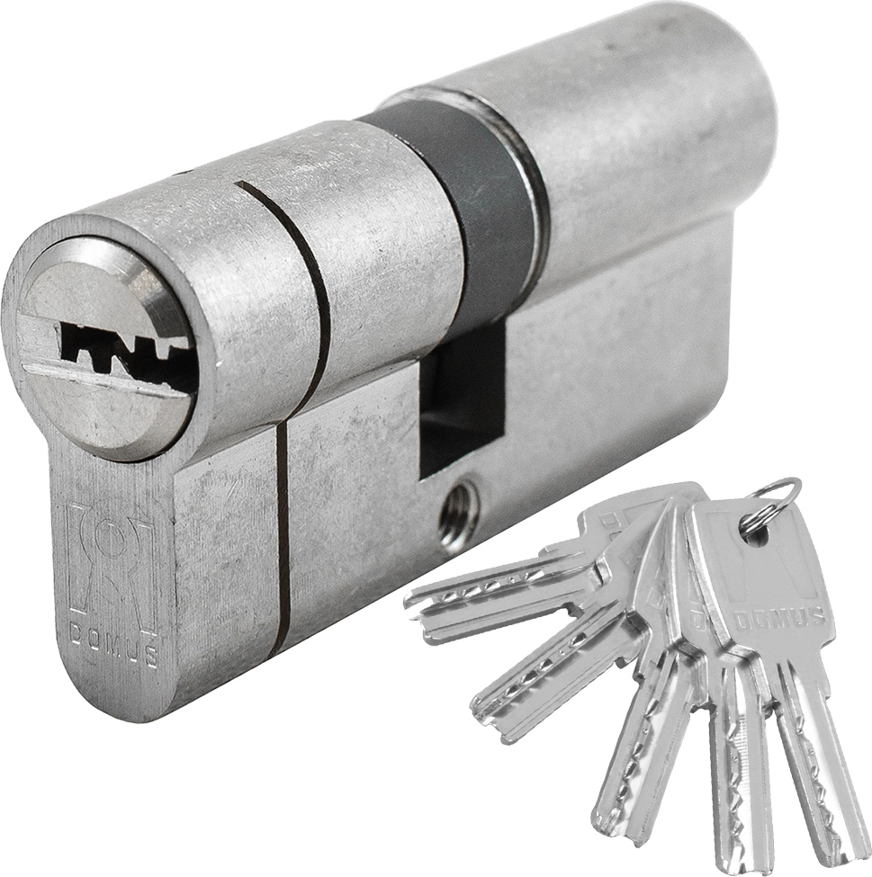 Ο κύλινδρος ασφαλείας Domus Econ, 65 mm (30-35) με φινίρισμα νίκελ ταιριάζει σε όλες τις χωνευτές κλειδαριές. Διατίθεται με 5 κλειδιά με βούλες στην συσκευασία. Domus Econ Κύλινδρος Ασφαλείας 65mm (30-35) Nickel 21065K