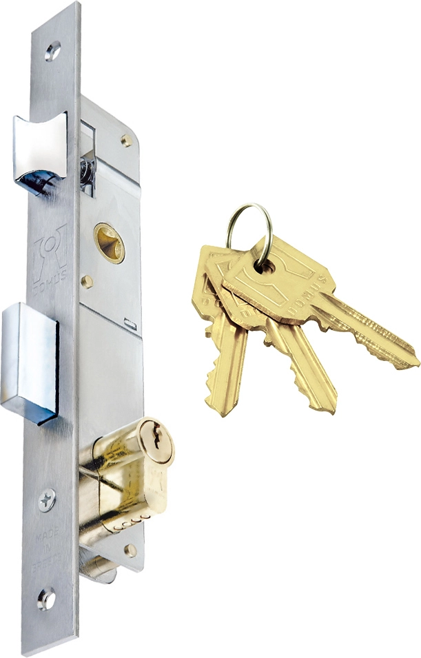 Κλειδαριά γλώσσας Domus, με κύλινδρο 54mm και γλώσσα 20mm, με 3 κλειδιά, σε χρωμέ απόχρωση.