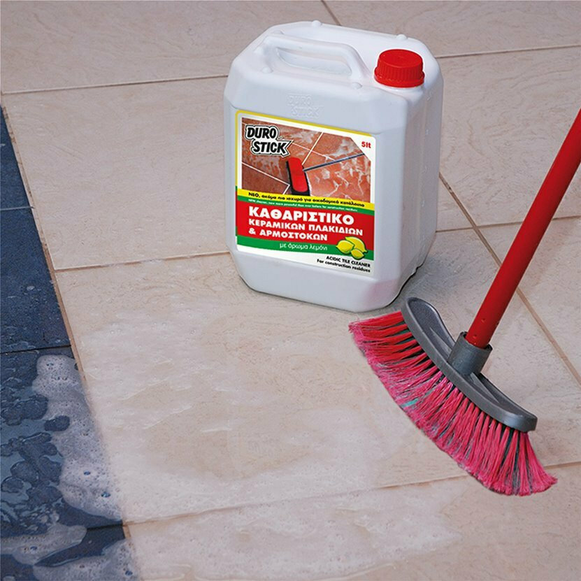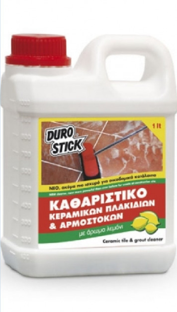 Όξινο καθαριστικό οικοδομικών καταλοίπων, με πανίσχυρη δράση. Διαλύει και αφαιρεί υπολείμματα αρμόστοκων, κόλλας πλακιδίων και οικοδομικά κατάλοιπα που δημιουργούνται κατά την τοποθέτηση. Καθαρίζει σε βάθος λεκέδες από λάδια, καφέ, ποτά, ασβέστη, πλαστικά χρώματα, σκουριά κ.ά. Αφαιρεί άμεσα, με ελάχιστο τρίψιμο, συσσωρευμένους ρύπους στους αρμούς πλακιδίων, ‘ζωντανεύοντας’ την απόχρωσή τους. Χρησιμοποιήστε το 20 ημέρες μετά την ολοκλήρωση της αρμολόγησης. DUROSTICK Καθαριστικό Κεραμικών πλακιδίων και Αρμόστοκων.