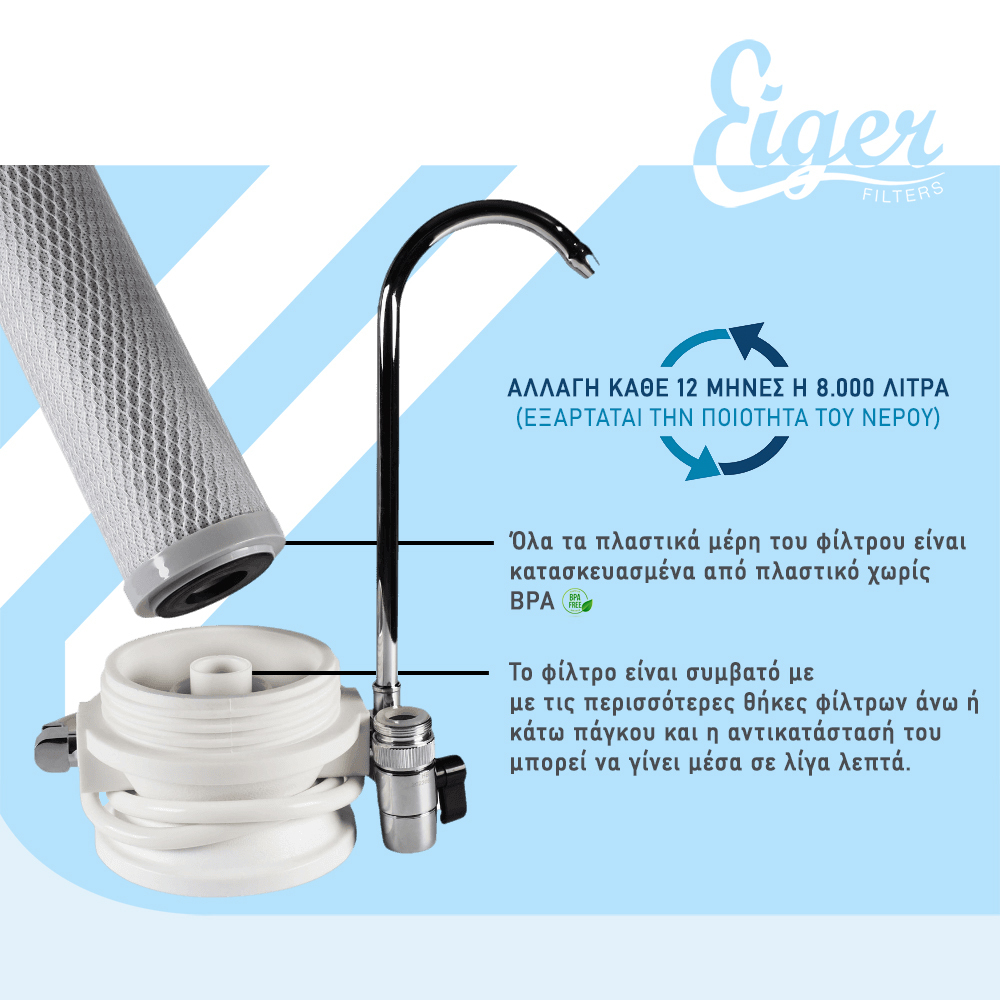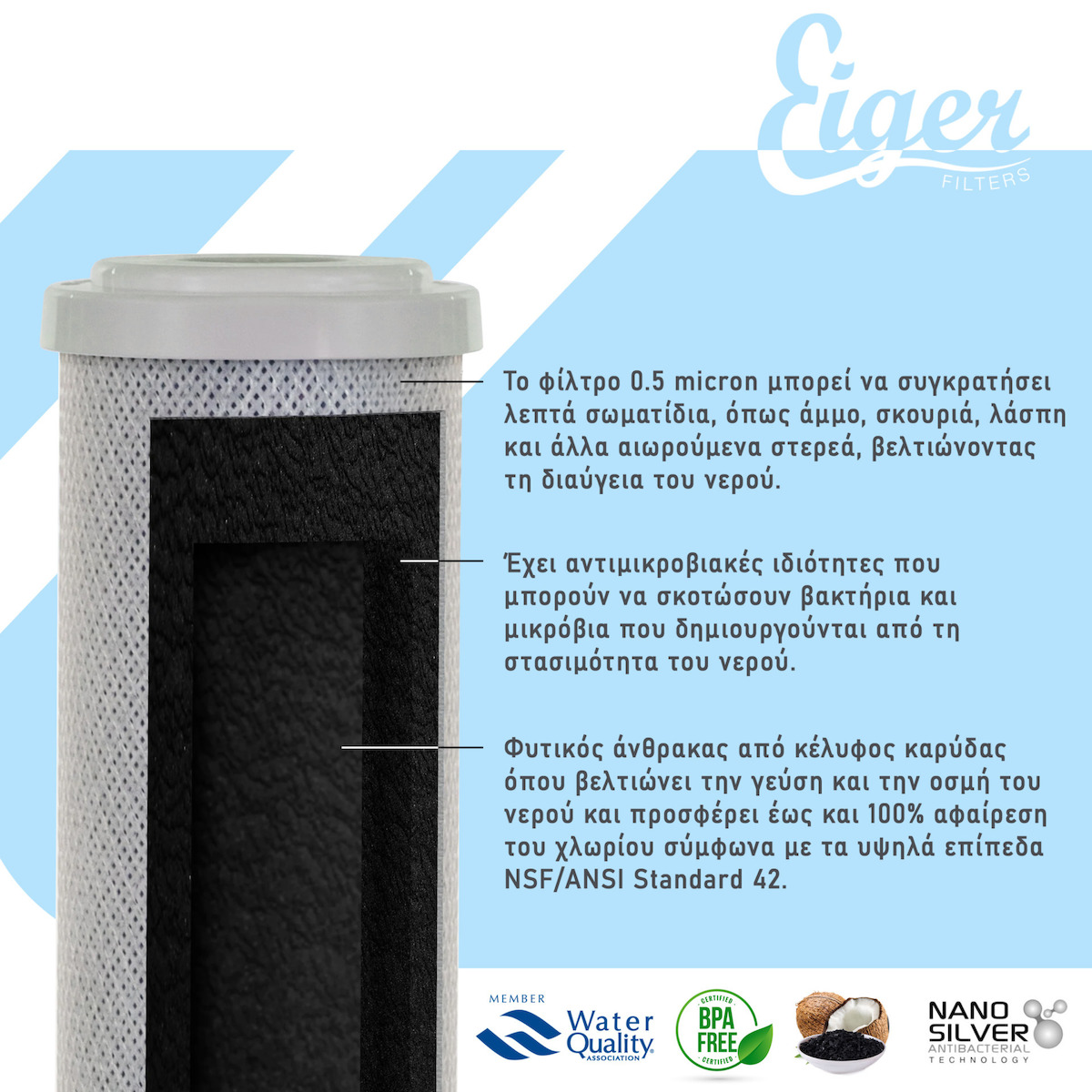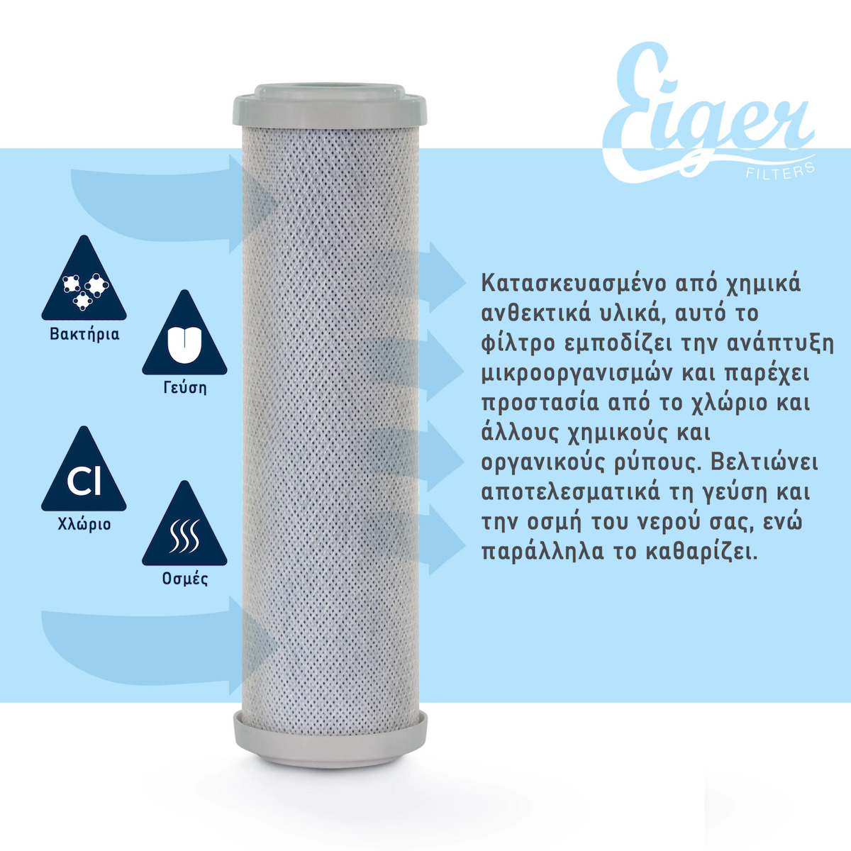 Eiger Ανταλλακτικό Φίλτρο Νερού Carbon Block Soft Antimicrobial Άνω και Κάτω Πάγκου 10″ 0.5 μm