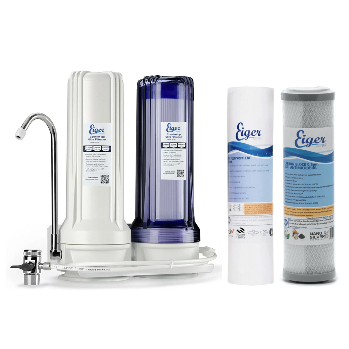 Eiger Διπλή Συσκευή Φίλτρου Νερού Άνω Πάγκου με Φίλτρο Eiger CTO 0.5μm και Eiger Filter PP 5μm WF-NT-2W-C-1
