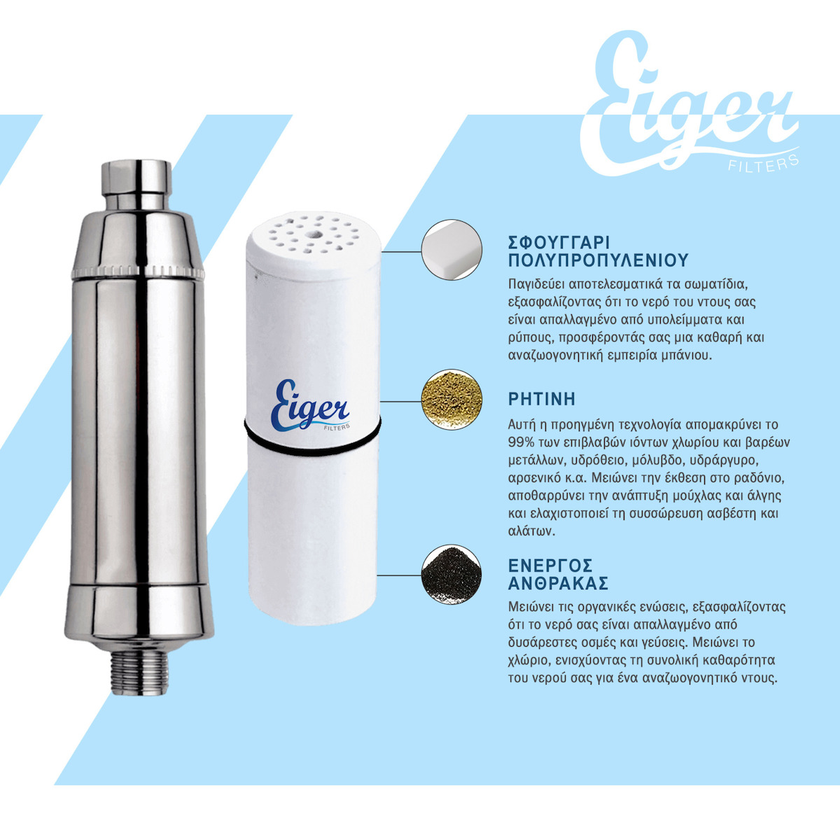 Eiger Φίλτρο για Ντουζ με Ρήτινη και Ενεργό Άνθρακα Συσκευή & Ανταλλακτικό EG-SF-CH