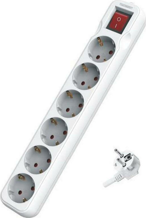 Eurolamp Πολύπριζο 6 Θέσεων με Διακόπτη και Καλώδιο 1.5m Λευκό 147-62214