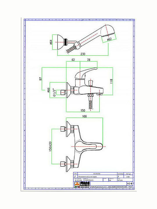 Fiore Altura Mia 29CR1500 Υδροαναμεικτική Μπαταρία Λουτρού Πλήρες