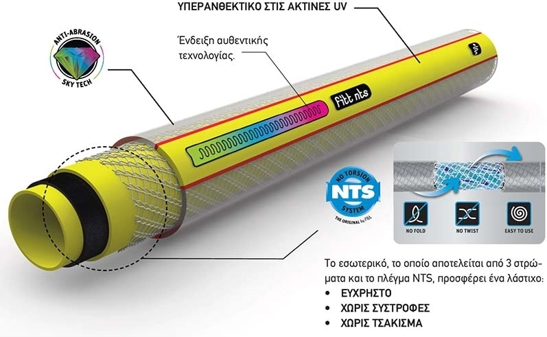 Εύκαμπτο λάστιχο που είναι κατάλληλο για πότισμα κήπου και μεταφορά νερού. Έχει διάμετρο 1/2″ με αντοχή σε πίεση έως 27bar που μπορεί να καλύψει τις ανάγκες επαγγελματικής και απαιτητικής ερασιτεχνικής χρήσης λόγω μέτριας ροής του νερού. Fitt Nts Λάστιχο Ποτίσματος Orange 1/2″ 25m