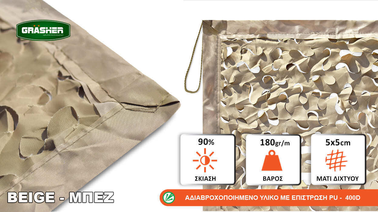 Grasher Τετράγωνο Δίχτυ Παραλλαγής Μπεζ 3x3m 180gr m² 103506