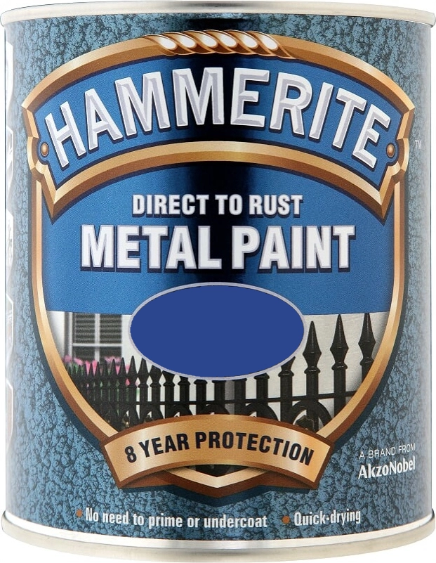 Το Hammerite Direct to Rust είναι ένα είδος μεταλλικής βαφής που μπορεί να εφαρμοστεί απευθείας σε σκουριασμένες μεταλλικές επιφάνειες χωρίς να χρειάζεται αστάρι. Έχει σχεδιαστεί για να παρέχει μακροχρόνια προστασία από τη διάβρωση και τη σκουριά και είναι κατάλληλο για χρήση σε διάφορες μεταλλικές επιφάνειες, όπως σίδηρος, χάλυβας και αλουμίνιο.Η ειδική του σύνθεση περιλαμβάνει υπόστρωμα και τελικό χρώμα σε μία συσκευασία, εξασφαλίζοντας προστασία για μεγάλο χρονικό διάστημα σε κάθε εσωτερική ή εξωτερική μεταλλική επιφάνεια. Παρέχει λεία στην αφή διακοσμητική εμφάνιση και αντιδιαβρωτική προστασία.Έχει ισχυρή πρόσφυση, μεγάλη σκληρότητα και εξαιρετικό φινίρισμα. Hammerite Χρώμα Direct To Rust 0.75lt Μπλε Μεταλιζέ