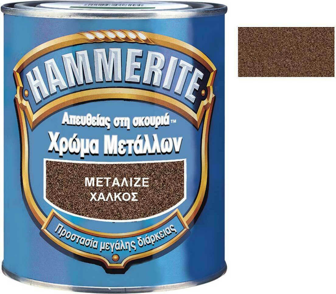 Το Hammerite Direct to Rust Μεταλιζέ είναι ένα είδος μεταλλικής βαφής που μπορεί να εφαρμοστεί απευθείας σε σκουριασμένες μεταλλικές επιφάνειες χωρίς να χρειάζεται αστάρι. Έχει σχεδιαστεί για να παρέχει μακροχρόνια προστασία από τη διάβρωση και τη σκουριά και είναι κατάλληλο για χρήση σε διάφορες μεταλλικές επιφάνειες, όπως σίδηρος, χάλυβας και αλουμίνιο.Η ειδική του σύνθεση περιλαμβάνει υπόστρωμα και τελικό χρώμα σε μία συσκευασία, εξασφαλίζοντας προστασία για μεγάλο χρονικό διάστημα σε κάθε εσωτερική ή εξωτερική μεταλλική επιφάνεια. Παρέχει λεία στην αφή διακοσμητική εμφάνιση και αντιδιαβρωτική προστασία.Έχει ισχυρή πρόσφυση, μεγάλη σκληρότητα και εξαιρετικό φινίρισμα. Hammerite Χρώμα Direct To Rust 0.75lt Χαλκός Μεταλιζέ