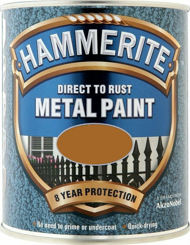 Το Hammerite Direct to Rust είναι ένα είδος μεταλλικής βαφής που μπορεί να εφαρμοστεί απευθείας σε σκουριασμένες μεταλλικές επιφάνειες χωρίς να χρειάζεται αστάρι. Έχει σχεδιαστεί για να παρέχει μακροχρόνια προστασία από τη διάβρωση και τη σκουριά και είναι κατάλληλο για χρήση σε διάφορες μεταλλικές επιφάνειες, όπως σίδηρος, χάλυβας και αλουμίνιο.Η ειδική του σύνθεση περιλαμβάνει υπόστρωμα και τελικό χρώμα σε μία συσκευασία, εξασφαλίζοντας προστασία για μεγάλο χρονικό διάστημα σε κάθε εσωτερική ή εξωτερική μεταλλική επιφάνεια. Παρέχει λεία στην αφή διακοσμητική εμφάνιση και αντιδιαβρωτική προστασία.Έχει ισχυρή πρόσφυση, μεγάλη σκληρότητα και εξαιρετικό φινίρισμα. Hammerite Χρώμα Direct To Rust 0.75lt Χαλκός Σφυρήλατο