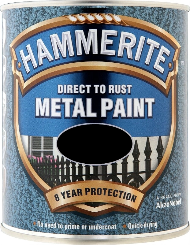 Το HAMMERITE ΑΠΕΥΘΕΙΑΣ ΣΤΗ ΣΚΟΥΡΙΑ είναι χρώμα μετάλλων για εφαρμογή απευθείας σε σκουριασμένο μέταλλο. Η ειδική του σύνθεση περιλαμβάνει υπόστρωμα και τελικό χρώμα σε μία συσκευασία, εξασφαλίζοντας προστασία για μεγάλο χρονικό διάστημα σε κάθε εσωτερική ή εξωτερική μεταλλική επιφάνεια. Παρέχει λεία στην αφή διακοσμητική εμφάνιση και αντιδιαβρωτική προστασία.Έχει ισχυρή πρόσφυση, μεγάλη σκληρότητα και εξαιρετικό φινίρισμα. Hammerite Χρώμα Direct To Rust 0.75lt Μαύρο Γυαλιστερό