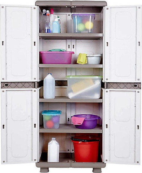Η ντουλάπα είναι κατασκευασμένη από πλαστικό, για εύκολη μετακίνηση και αντοχή στον χρόνο.