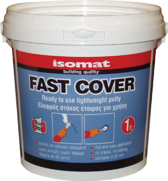 Στόκος Fast-Cover 1 Kg της Ιsomat, ακρυλικός, έτοιμος, σε λευκή απόχρωση.