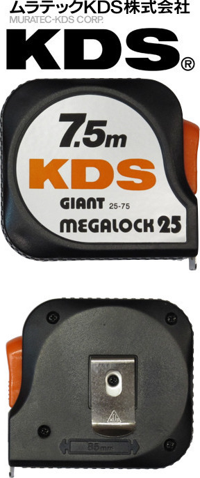 Μέτρο της KDS Giant Megalock των 7.5 μέτρων και φάρδος μετροταινίας 25mm. Διαθέτει κουμπί ασφάλισης-απασφάλισης της λάμας. Με κινητό γάντζο άκρης για ακρίβεια σε εσωτερικές και εξωτερικές μετρήσεις (true zero).Είναι κατασκευασμένο από ισχυρό ελαστικό πλαστικό υλικό κάνοντας το άθραυστο ακόμα και αν σας πέσει από τα χέρια και δεν πληγώνει την επιφάνεια με την οποία θα έρθει σε επαφή.