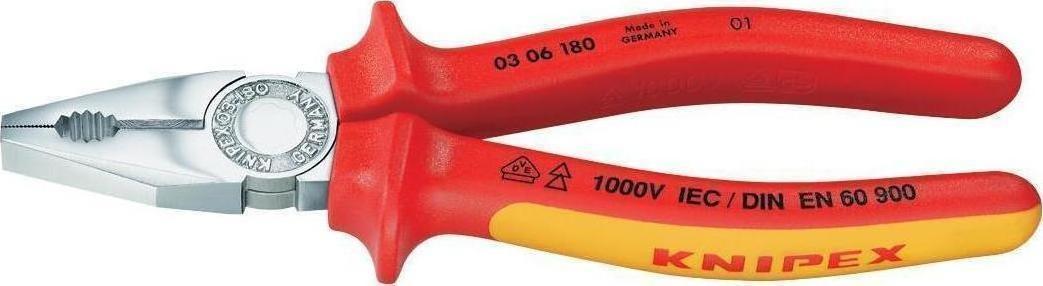 Knipex Πένσα Ίσια Ηλεκτρολόγου Μήκους 180mm 1000V 0306180