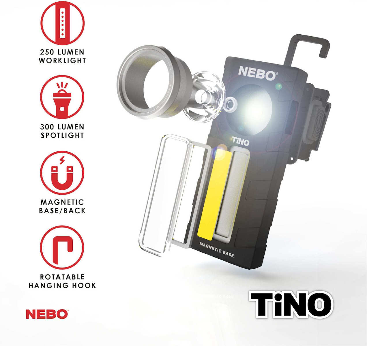 Nebo Φακός Συνεργείου Μπαταρίας LED Διπλής Λειτουργίας 300lm Tino 6809 Black