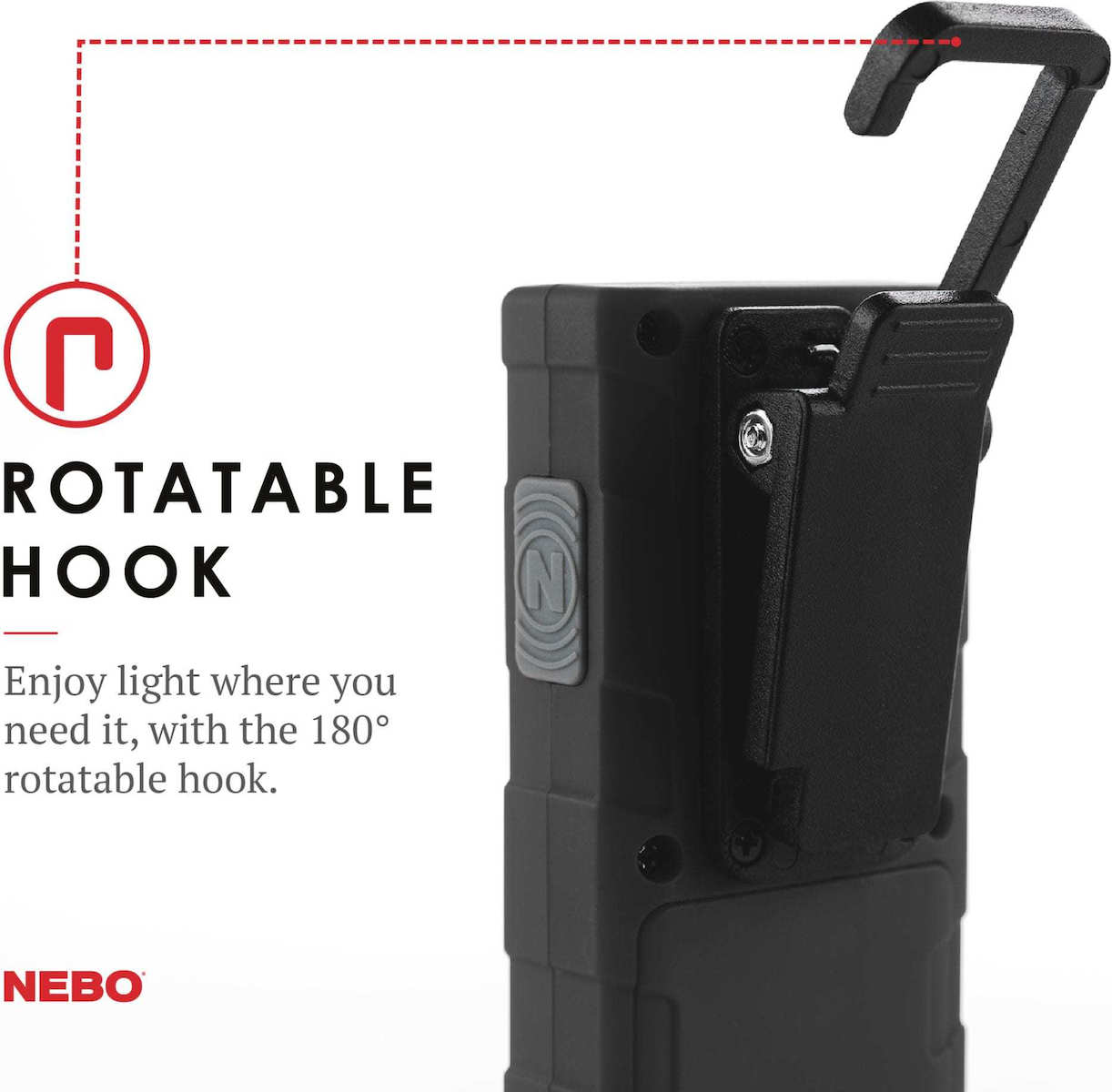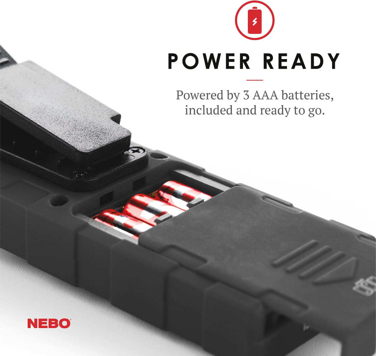 Φακός LED της Nebo, κατάλληλος για χρήση σε χώρους εργασίας όπως το συνεργείο. Λειτουργεί με 3 μπαταρίες AAA (περιλαμβάνονται). Η μέγιστη ισχύς της φωτεινότητάς του φτάνει έως 300lm. Λόγω του μαγνήτη που διαθέτει, μπορεί να στερεωθεί σε μεταλλικές επιφάνειες και να σας διευκολύνει σε διάφορες εργασίες. Επίσης, έχει ενσωματωμένο δεύτερο πλευρικό φως. Έχει ελαφριά κατασκευή που ζυγίζει 104gr.