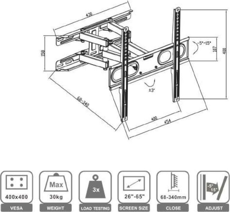 Osio Βάση Τηλεόρασης Τοίχου με Βραχίονα έως 65″ και 30kg OSM-5865