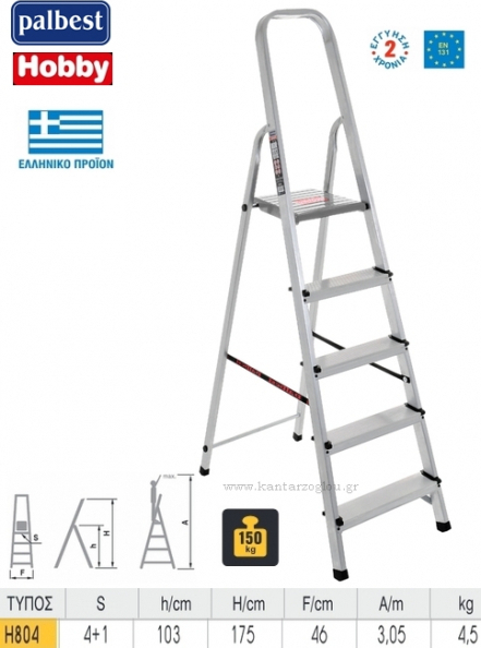 Palbest Hobby Σκάλα Αλουμινίου με 4+1 Σκαλοπάτια 175cm H804