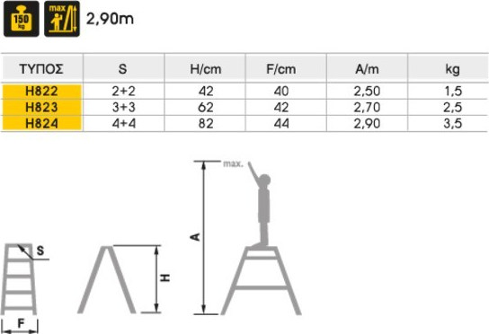 Palbest Hobby Σκαλοσκαμπό Σκάλα Αλουμινίου με 3×3 Σκαλοπάτια 62cm H823