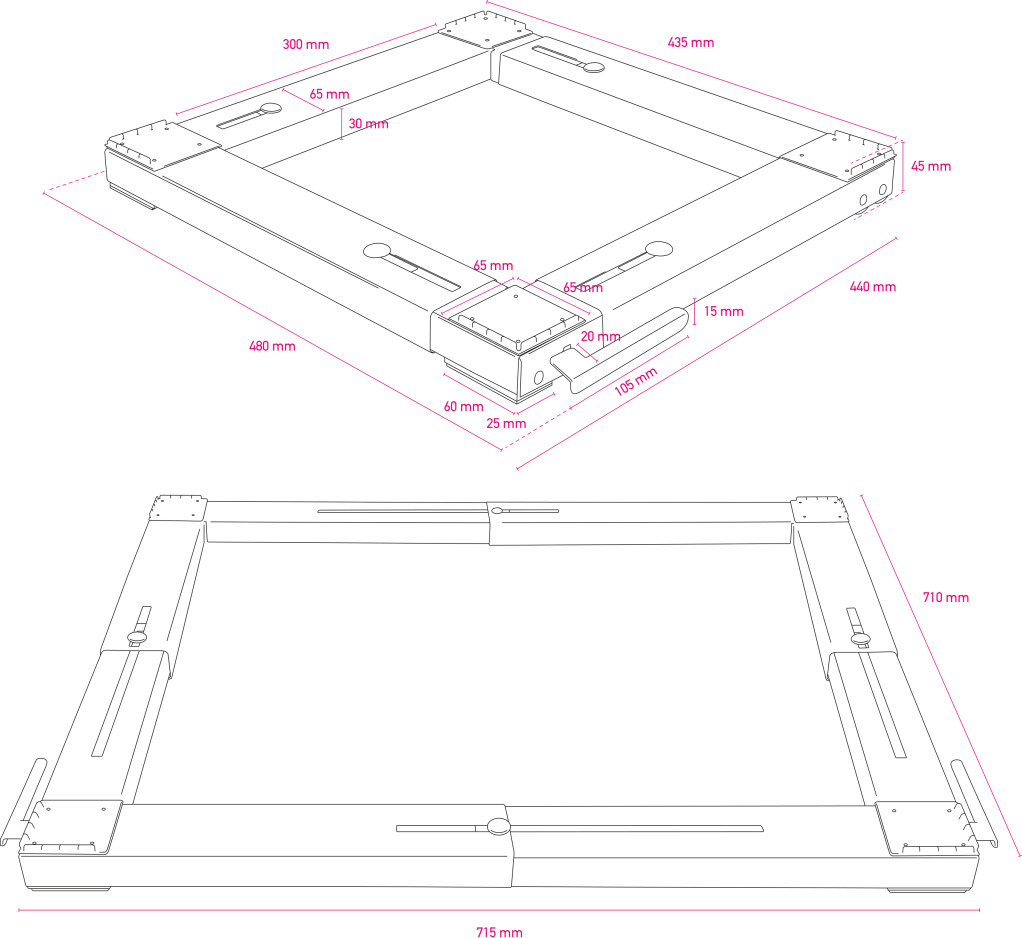 Roller Ρυθμιζόμενη Βάση Πλυντηρίου Στεγνωτηρίου Μεταλλική με Ρόδες 70×70εκ. 0000692