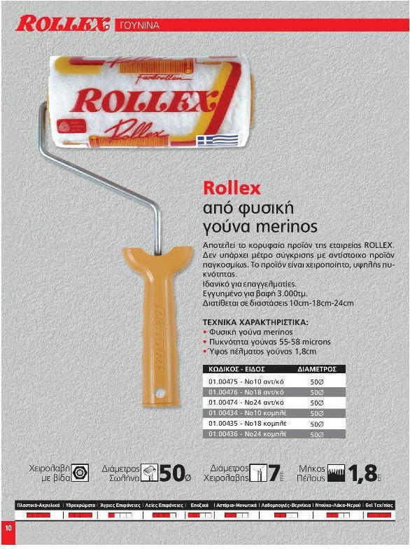 Ρολό βαφής Rollex κομπλέ από φυσική γούνα Merinos. Χειροποίητο, υψηλής πυκνότητας. Ιδανικό για επαγγελματίες. Εγγυημένο για βαφή 3.000τμ.