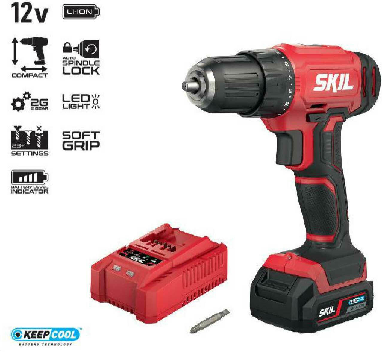 Το δραπανοκατσάβιδο της εταιρείας Skil λειτουργεί με μπαταρία 12 Volt. Είναι κατάλληλο τόσο για βίδωμα – ξεβίδωμα, όσο και για άνοιγμα τρύπας. Πιο συγκεκριμένα κάνει διάτρηση σε ξύλο με διάμετρο τρύπας έως 35 χιλιοστά, χάλυβα με διάμετρο τρύπας έως 10 χιλιοστά και διάφορα άλλα δομικά υλικά.