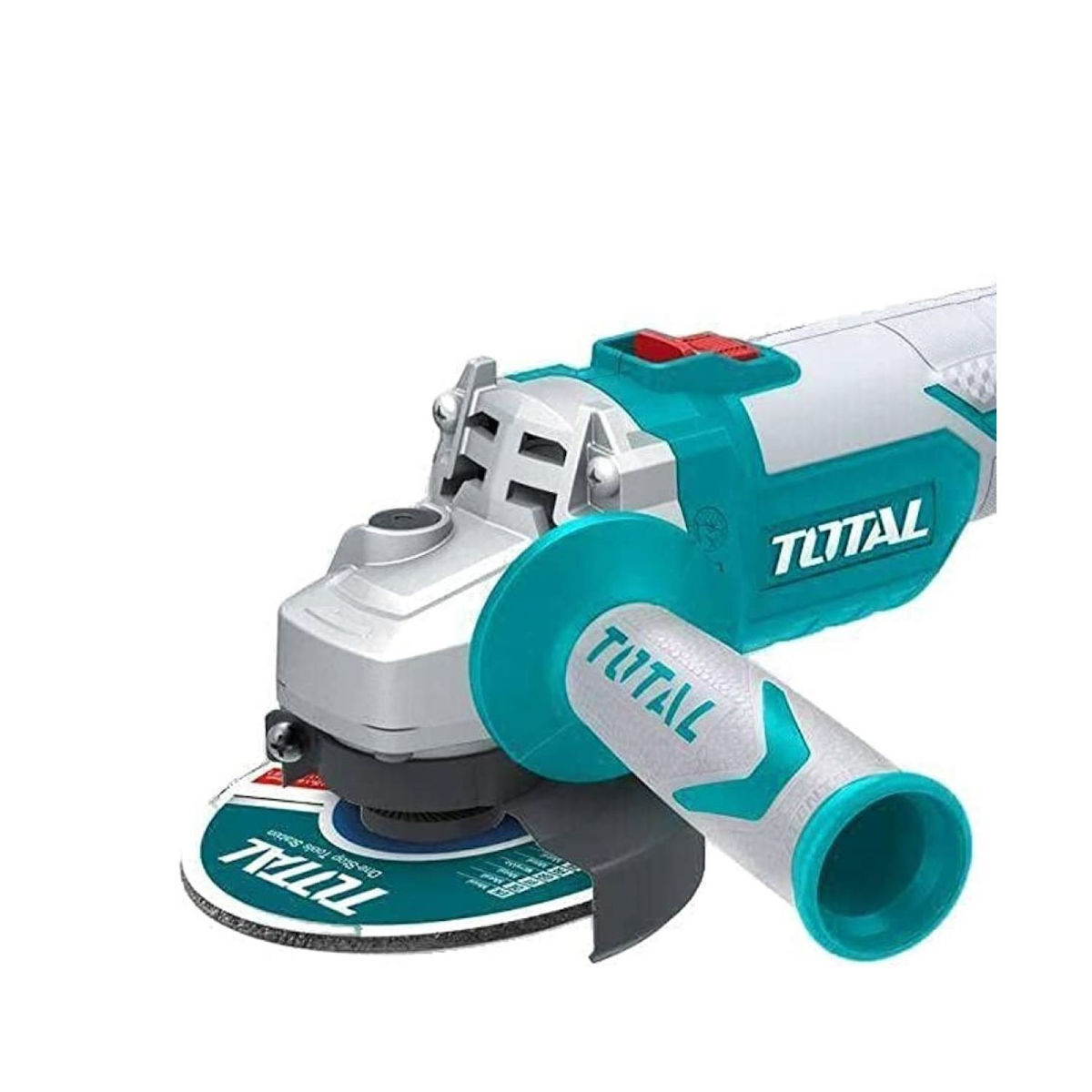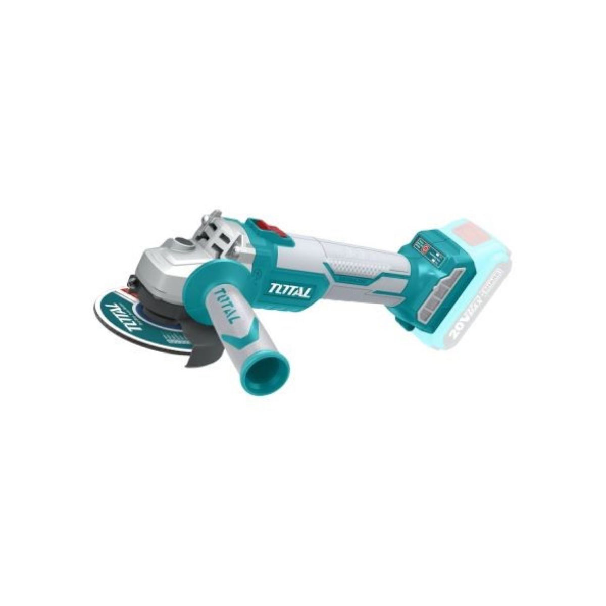 Γωνιακός τροχός της εταιρείας Total, με λειτουργία μπαταρίας 20V (δεν περιλαμβάνεται). Δέχεται δίσκους με διάμετρο έως και 115mm, έτσι καλύπτει ικανοποιητικά τις περισσότερες ερασιτεχνικές και επαγγελματικές εργασίες καθώς μπορεί να κόψει σε βάθος έως 3 εκατοστά.