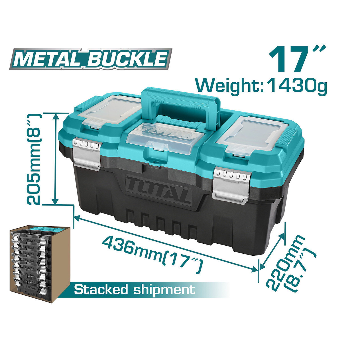 Total Εργαλειοθήκη 17″ Χειρός Πλαστική με Ταμπακιέρα με Μεταλλικά Κουμπώματα 436x220x205mm TPBX0172
