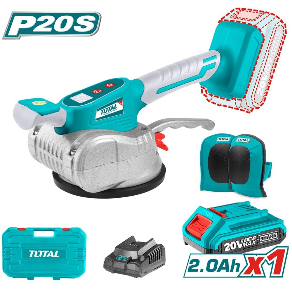 Total Ηλεκτρική Βεντούζα Και Δονητικό Πλακιδίων Μπαταρίας Λιθίου 20V 1x2Ah και Επιγονατίδες TTVLI20101