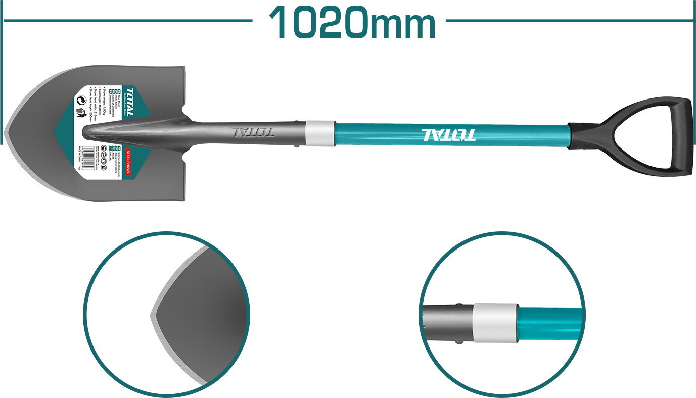 Πατόφτυαρο μήκους 29cm με λαβή από τον κατασκευαστή Total. Είναι κατάλληλο για εργασίες όπως σκάψιμο ή διάνοιξη λάκκων.