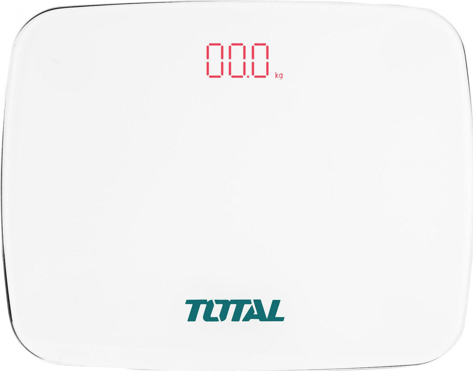Ψηφιακή ζυγαριά μπάνιου σε λευκό χρώμα της εταιρείας Total, για μέτρηση του σωματικού βάρους έως και 180 κιλά.