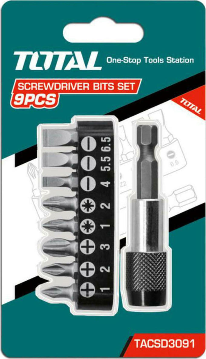 Το σετ μύτες δραπανοκατσάβιδου TACSD3091 της TOTAL είναι κατάλληλο για όλα τα εργαλεία με υποδοχή καρέ 1/4” αλλά και με απλό τσοκ.
