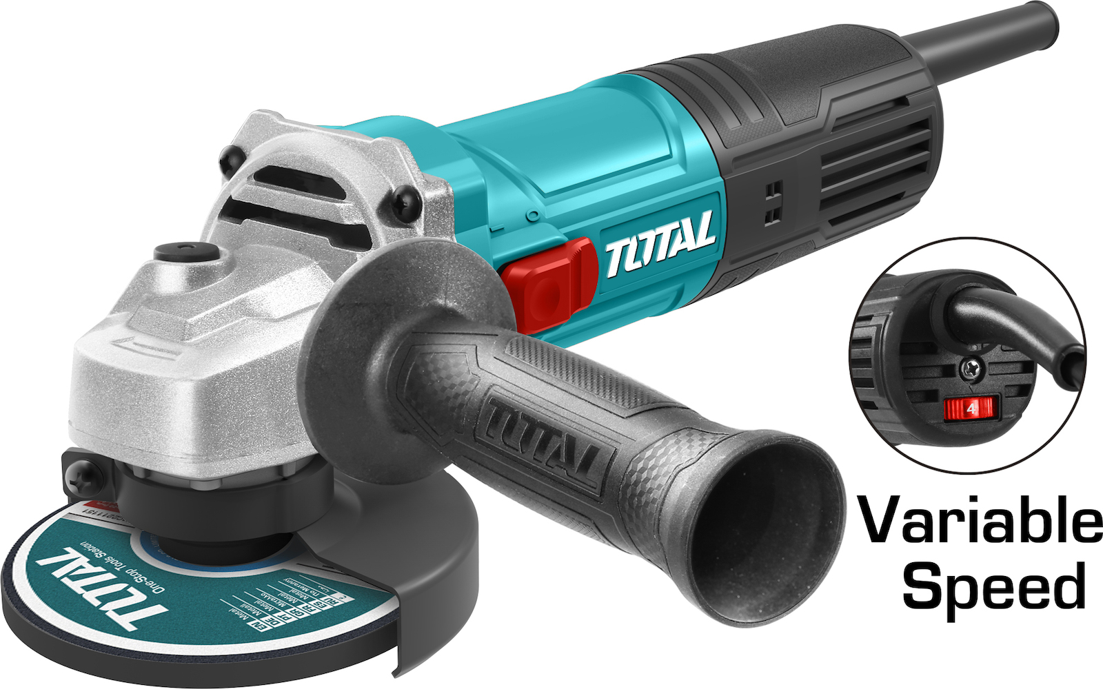 Ηλεκτρικός γωνιακός τροχός ηλεκτρονικός λειαντήρας 900W της Total TG109125565 με διάμετρο δίσκου 125mm, πλαϊνή χειρολαβή και καλώδιο ρεύματος 3m.