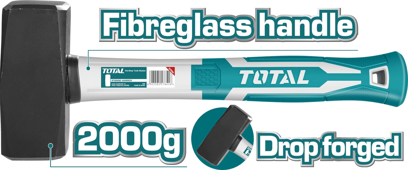 Βαριοπούλα από την TOTAL με λαβή από fiberglass και ένθετα στοιχειά TPR, για άνετη και χωρίς κραδασμούς εργασία. Διαθέτει κεφαλή από θερμικά επεξεργασμένο σφυρήλατο χάλυβα.