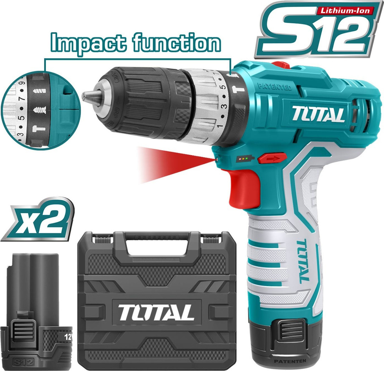 Total TIDLI1232 Κρουστικό Δραπανοκατσάβιδο Μπαταρίας 12V 2×1.5Ah