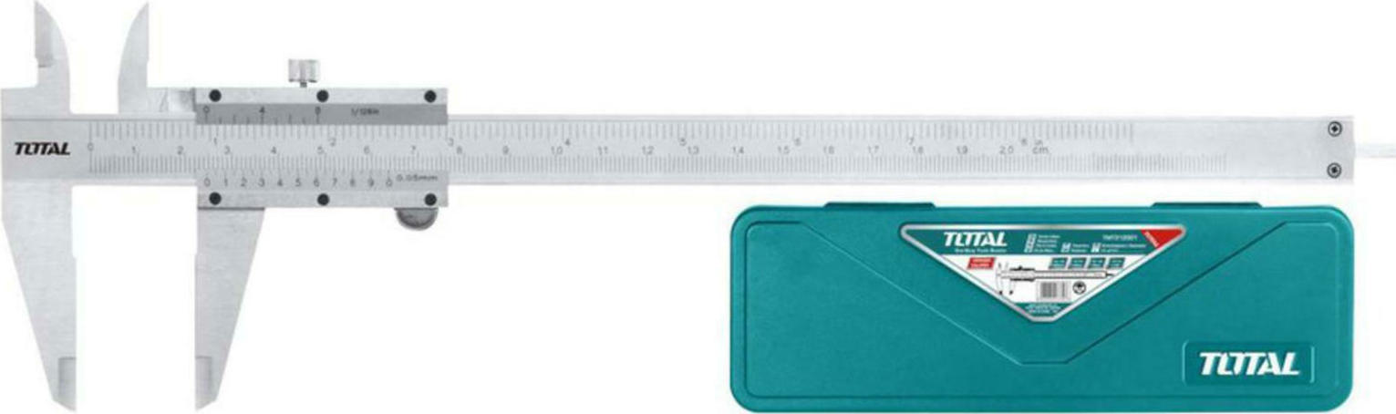Παχύμετρο INOX 0-200mm της TOTAL, TMT312001. Κλίμακα μέτρησης εως 200mm. Κατασκευασμένο από ανοξείδωτο ατσάλι. Μέτρηση εσωτερικής διαμέτρου, εξωτερικής και βάθους. Total TMT312001 Αναλογικό Παχύμετρο με Εύρος Μέτρησης έως 200mm