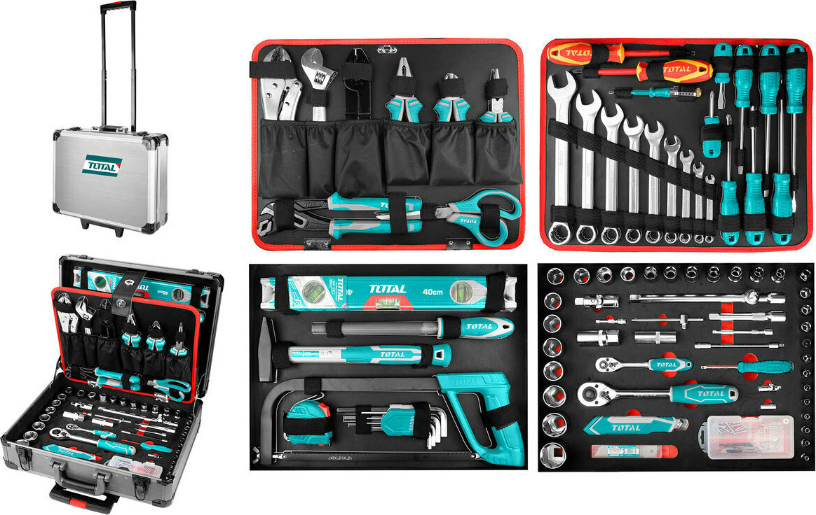 Total Τροχήλατη Βαλίτσα Αλουμινίου με 147 Εργαλεία THKTHP21476
