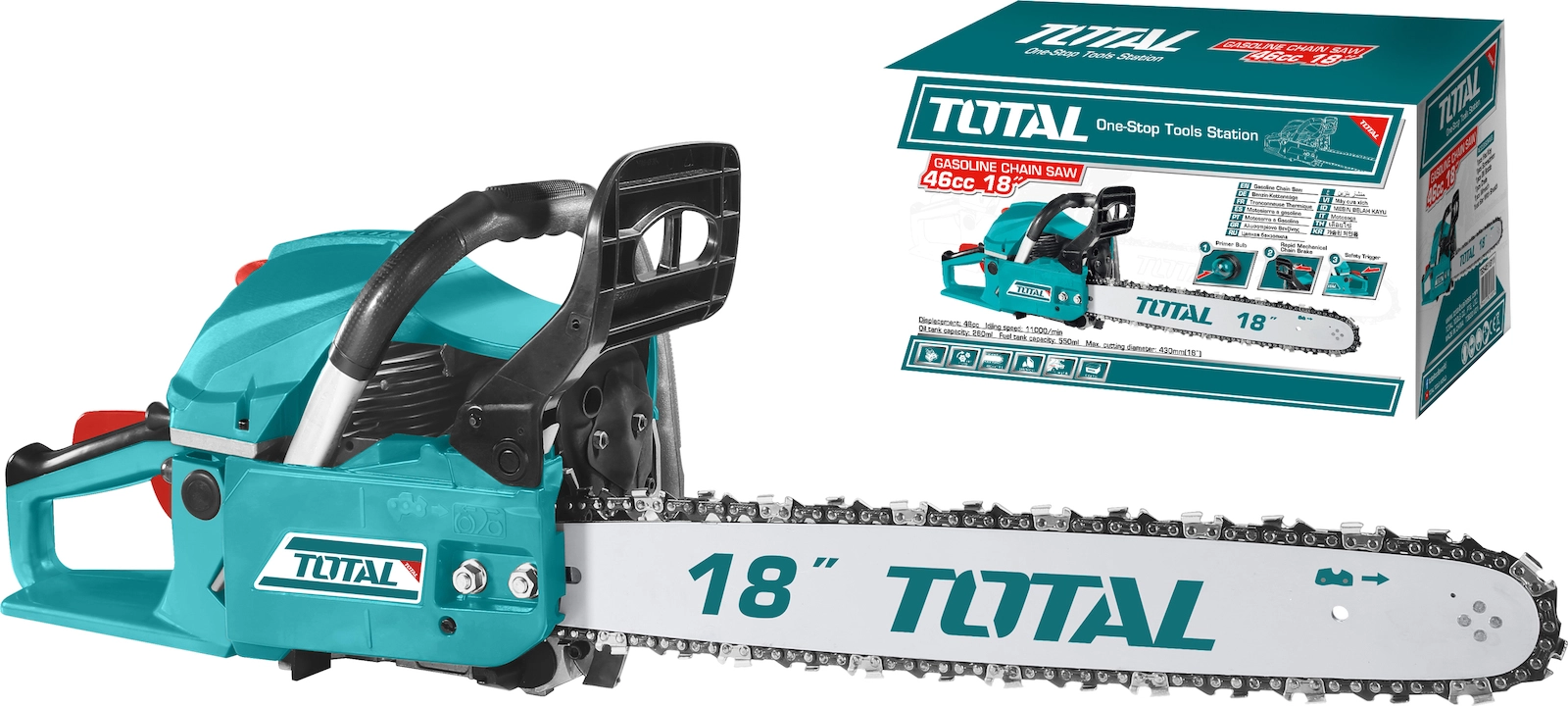 Το αλυσοπρίονο της Total λειτουργεί με βενζινοκινητήρα 2.2 ίππων και κυβισμό 46cc. Μπορείτε να κινηθείτε ελεύθερα καθώς δεν εξαρτάται από καλώδια και πρίζες. Με βάρος 6.2 κιλά και μήκος λάμας 45cm, είναι ιδανικό για κοπή ξυλων, καυσόξυλων και μικρών δέντρων.