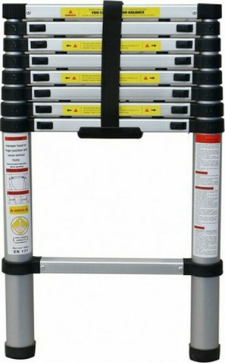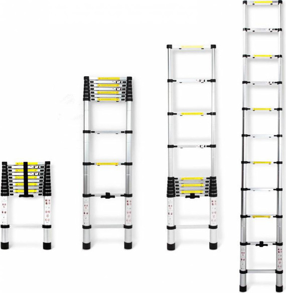 Πτυσσόμενη τηλεσκοπική σκάλα κατασκευασμένη από κράμα αλουμινίου για μεγάλη σταθερότητα και αντοχή. Διαθέτει 14 σκαλιά σε ύψος 4.4 μέτρα.