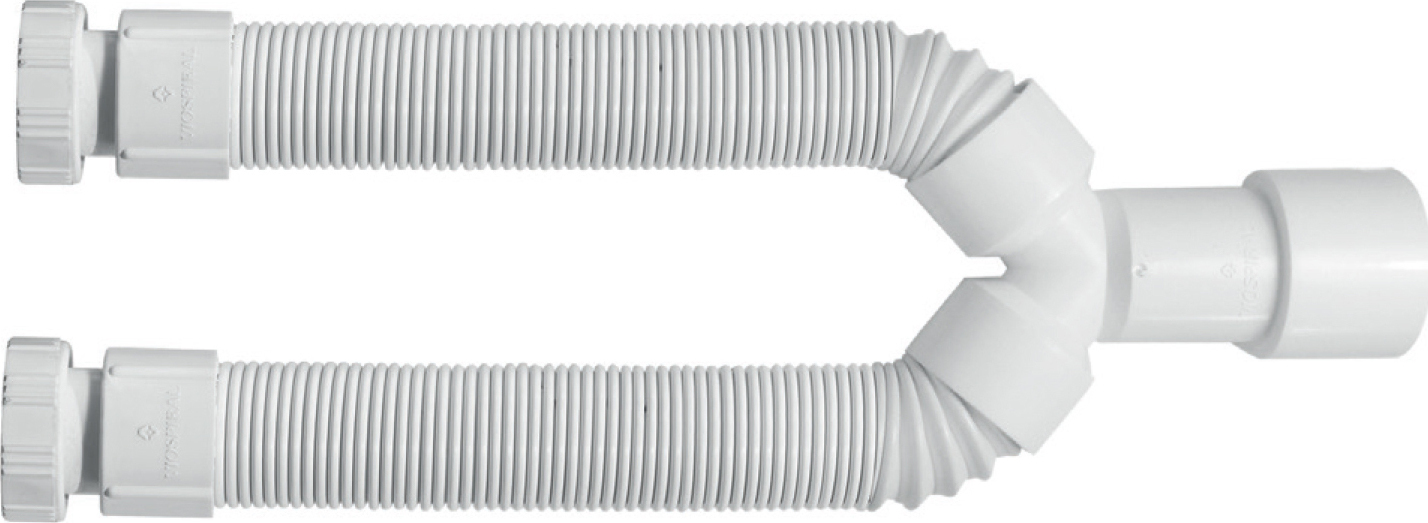 Σιφώνι της εταιρίας Viospiral, κατάλληλο για τη διοχέτευση του νέρου σε μία υδραυλική εγκατάσταση. Μπορεί να τοποθετηθεί σε νεροχύτες οικιακών, ξενοδοχειακών και γενικότερα επαγγελματικών εγκαταστάσεων. Οι 2 εξόδοι νερού είναι κατάλληλοι για τη διοχέτευση του νερού από εγκαταστάσεις 2 σημείων όπως για παράδειγμα εγκαταστάσεις με διπλό νεροχύτη.
