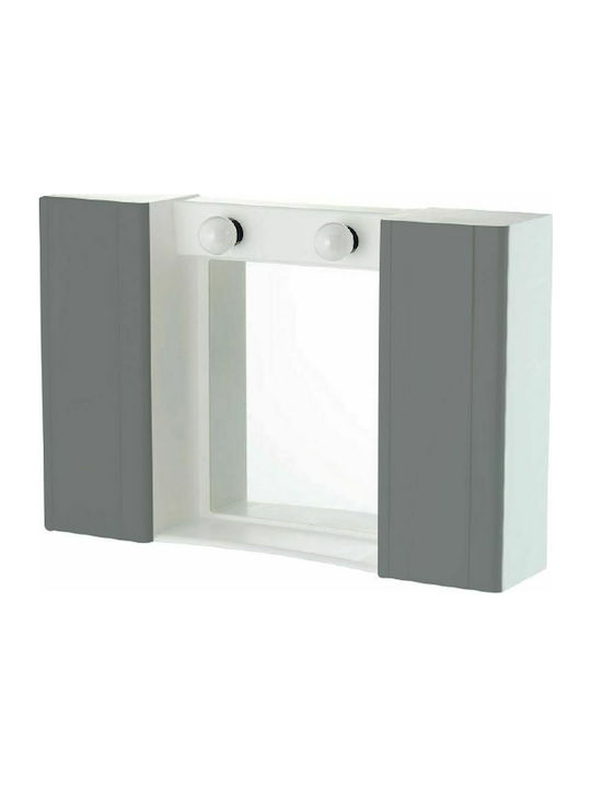 Viospiral Ορθογώνιος Καθρέπτης Μπάνιου από Πλαστικό με Ντουλάπι, Ράφι & Υποδοχή Λαμπτήρα 62×42.5cm Γκρι 59-7102