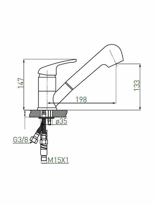 Μπαταρία Νεροχύτη Κουζίνας Πάγκου με Εξερχόμενη Κεφαλή Βουρτσάκι 36-6704 Poem Viospiral