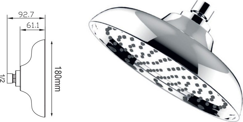 Το σχήμα της είναι στρογγυλό και είναι κατάλληλη για τοποθέτηση σε μπάνια με πιο κλασικό ύφος, ενώ μπορεί εύκολα να ταιριάξει με οποιαδήποτε διακόσμηση. Έχει διάμετρο 18 εκατοστά και ενδείκνυται για ντουζιέρες περιορισμένου μεγέθους.