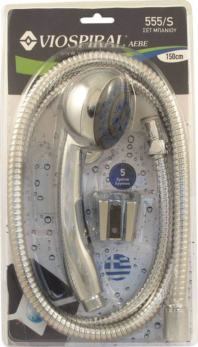 Το σετ περιλαμβάνει ένα σπιράλ λουτρού μήκους 150cm, ένα τηλέφωνο 2 λειτουργιών καθώς και στήριγμα τοίχου.